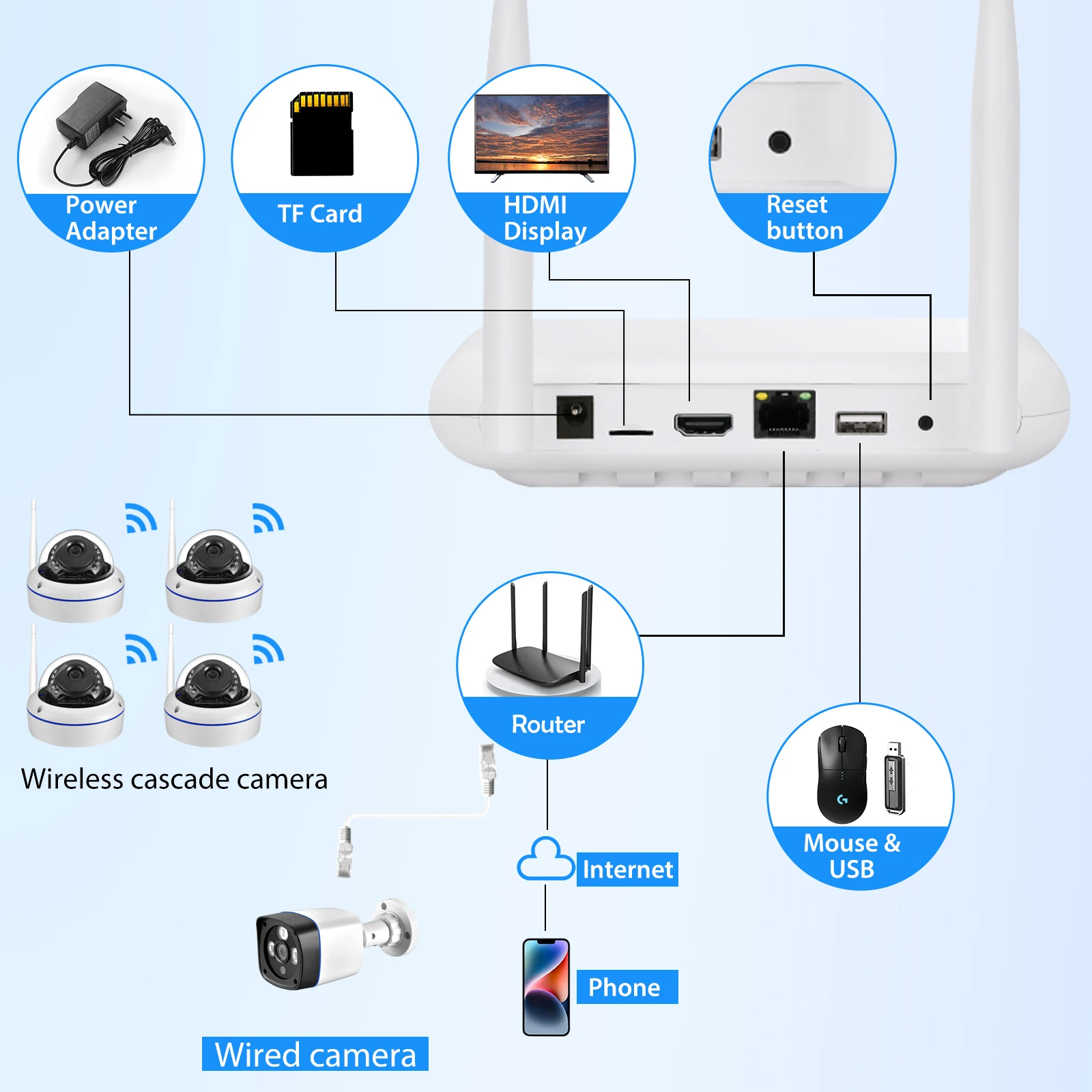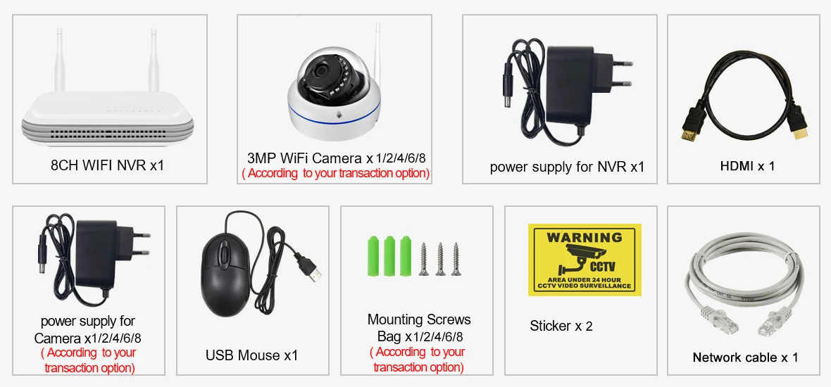NVR Support 4CH 5MP/8CH 3MP Wifi HD Camera, 4K/8MP Wired HD Camera, Camera have Wifi 3MP And Wifi 5MP Optional