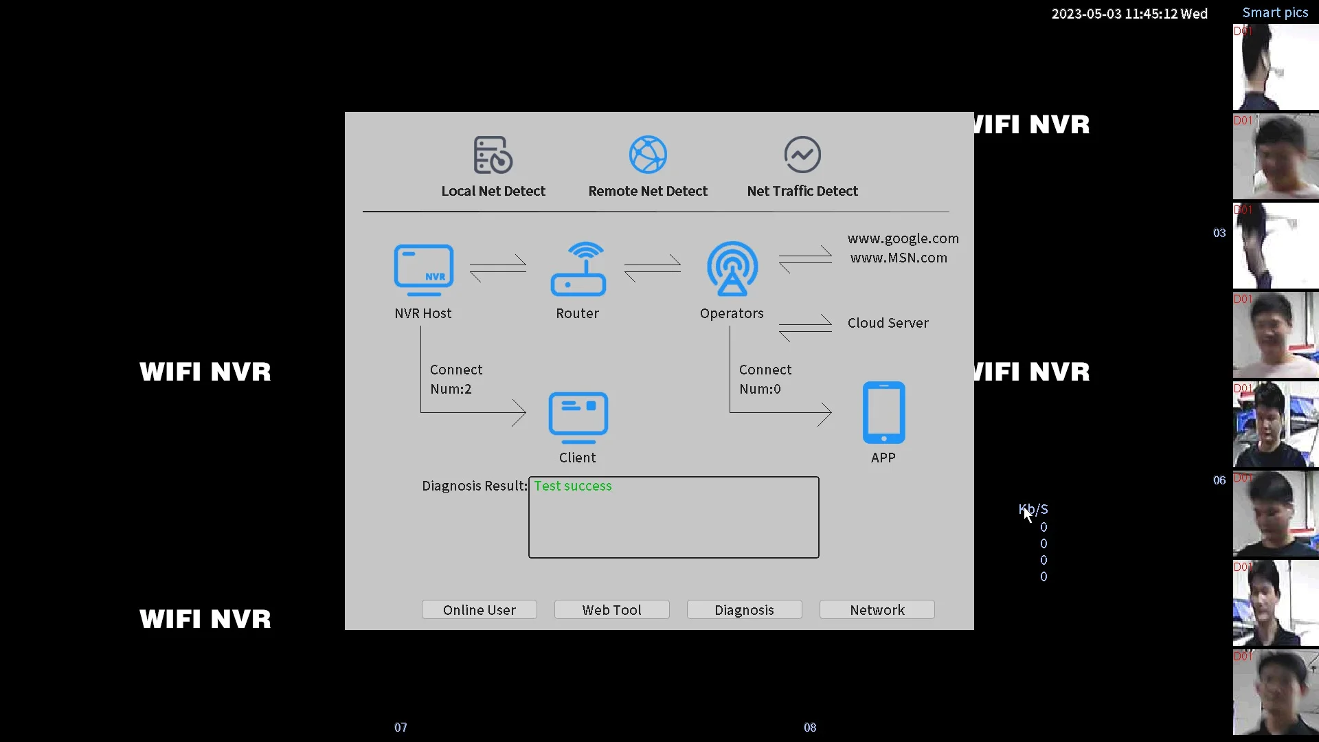 (1) Right Click the mouse- NetDetect- Remote Net Detect- Diagnosis Result, If it shows Test Success, the network is connected.
