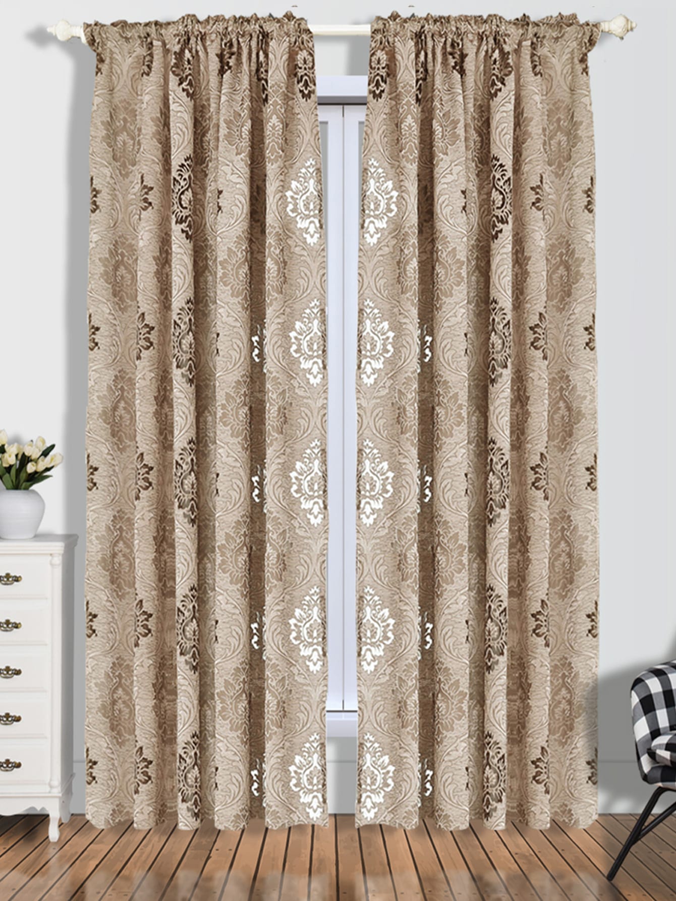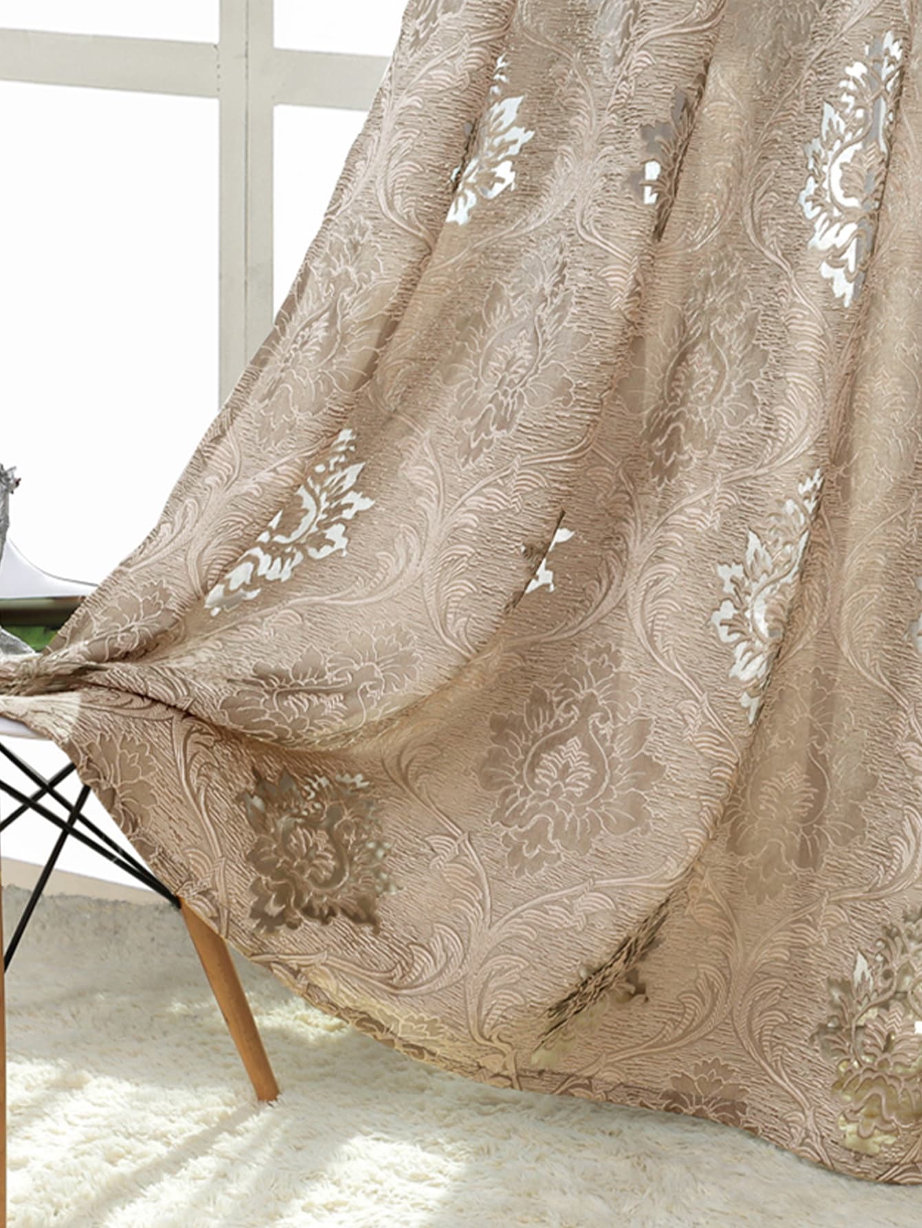 Damask Pattern Single Panel Sheer Curtain