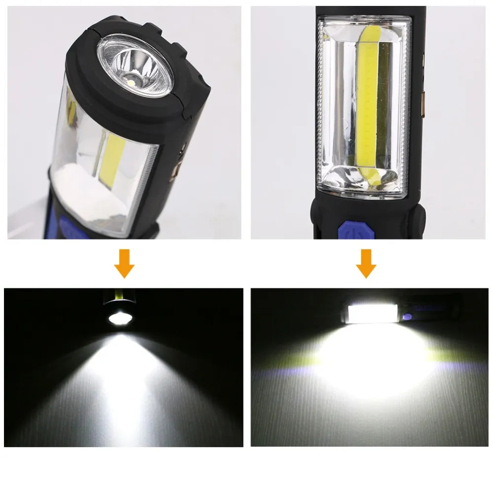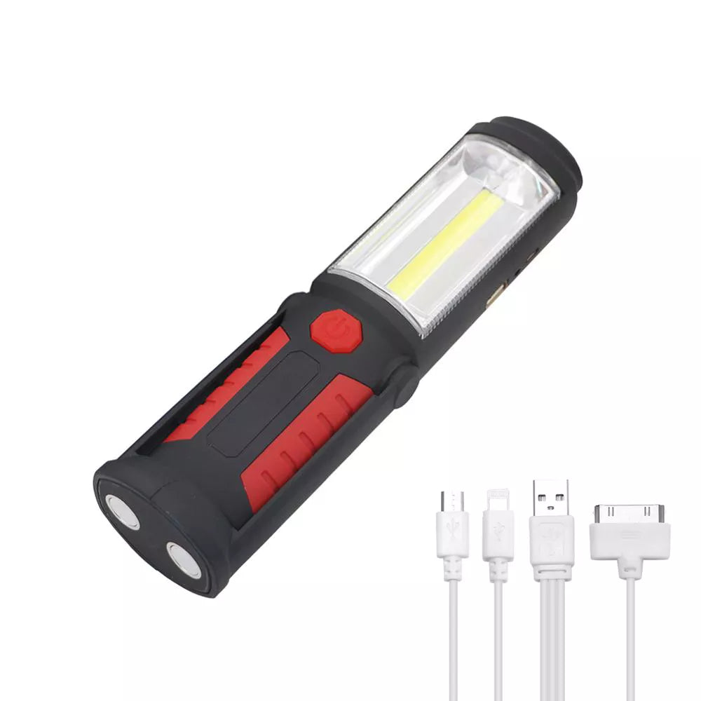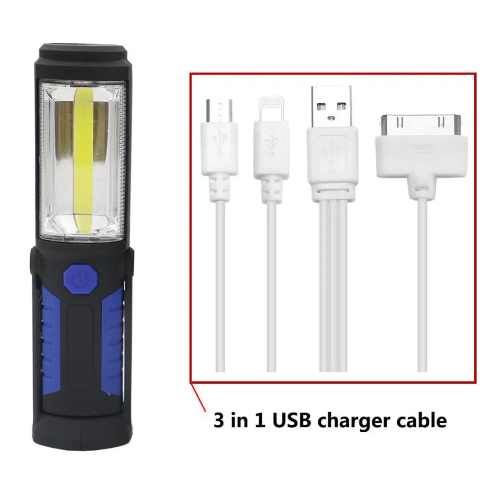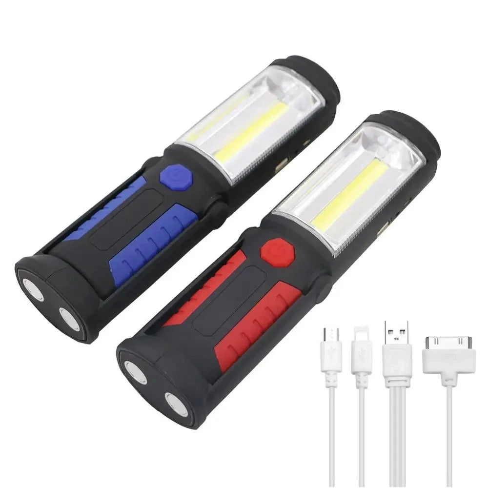 Portable USB Rechargeable COB Night Light Flashlight LED Torch Lantern Work Light Camping Lamp with Built-in Battery Magnet Hook