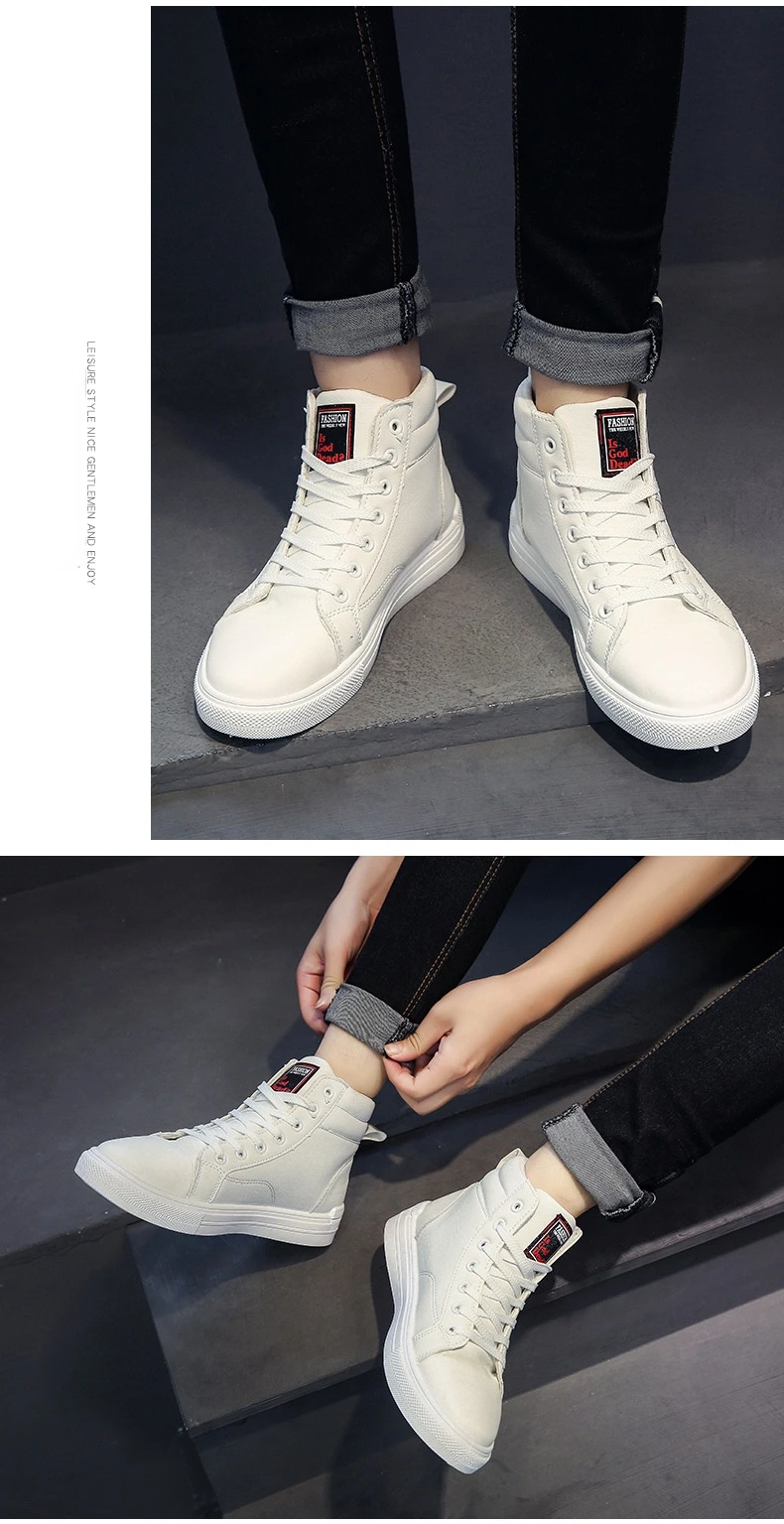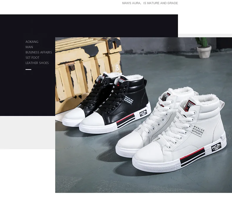Fashion Leather Men's Canvas Shoes Autumn High-Top Casual Shoes for Men Non-Slip Male Sneakers 2023 New Winter Tenis Masculino